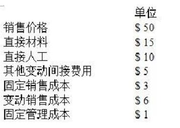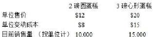 Specialty 蛋糕公司生产2种蛋糕,一种2磅的圆蛋糕和一种3磅的心形蛋糕。公司的总固定成本为$94,000。两种蛋糕的变动成本和销售数据如下。