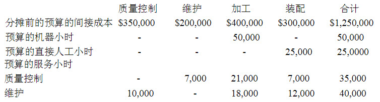 Rochester公司的经理正在讨论分摊服务部门成本给生产部门的方法,如服务部门有质量控制部门和维护部门。为了帮助他们讨论,财务总监提供了以下的信息