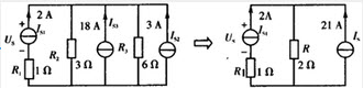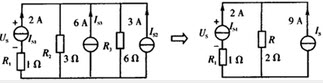 利用电压源与电流源等效互换的方法求解图所示电路中的电压US。的正确过程是()。