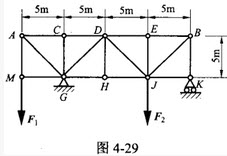 不经计算,通过直接判定得知图4-29所示桁架中零杆的数目为()。