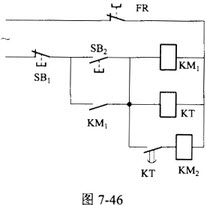 D:KM1和KM2线圈同时通电,M2起动,经过一定时间,KT线圈通电,M1起动