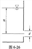 图6-26中,水箱侧壁开一圆形薄壁孔口,直径d=5cm,水面恒定,孔口中心到水面的高度H=4.0m,已知孔口的流速系数φ=0.98收缩系数ε=0.62,孔口出流的流量Q为()L/s。