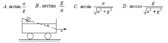 一洒水车以等加速度a向前平驶,如图示,则水车内自由表面与水平面间的夹角等于()。
