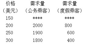 假设公务乘客和度假乘客对从纽约到波士顿之间民航机票的需求如下: