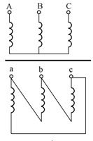 绘图题:画出图E-55变压器绕组线电压相量图并判断其接线组别。
