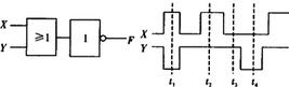 逻辑电路和输入信号X、Y的波形如图所示,由此可知,输出F为1时刻是()。