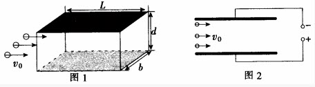 某同学设计了一种静电除尘装置,如图1所示,其中有一长为L、宽为b、高为d的矩形通道,其前、后面板为绝缘材料,上、下面板为金属材料;图2是装置的截面图,上、下两板与电压恒定为U的高压直流电源相连.带负电的尘埃被吸入矩形通道的水平速度为υ