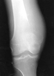 男性,15岁。有胫骨近端疼痛、肿胀1个月,夜间痛明显,无明显外伤史。