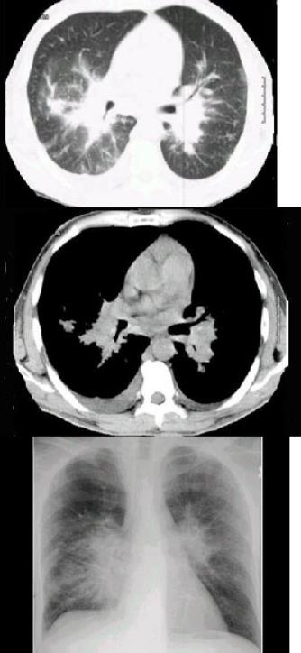HIV阳性患者近来咳嗽,胸闷,胸片检查发现病变,CT检查如图,最有可能的诊断为()。