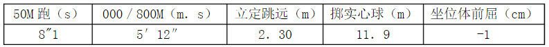高三学生小明,性别:男,身高175厘米,体重:90千克,部分体质测试成绩如下:
