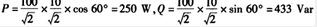 A:P=100×10×cos60°=500W,Q=100×10×sin60°=866Var