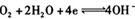 含有杂质的Fe在水中发生吸氧腐蚀,则阴极反应是()。