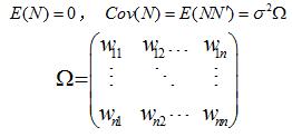 对于模型Y=Xβ+N,若存在序列相关,同时存在异方差,即有