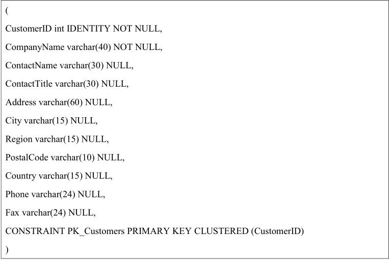 你是Contoso公司的数据库开发者.公司在SQLServer2005/2008中储存它的销售数据.数据库包含一个表customers,它有500,000行.用来创建表customers的脚本如图所示: