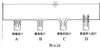如图6-24所示,管道进口形式从左到右排列为A、B、C、D,局部阻力系数由大到小的排列顺序是()。