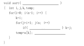 函数sort使用选择法将一维整型数组中各元素按值从大到小排序。请填空。