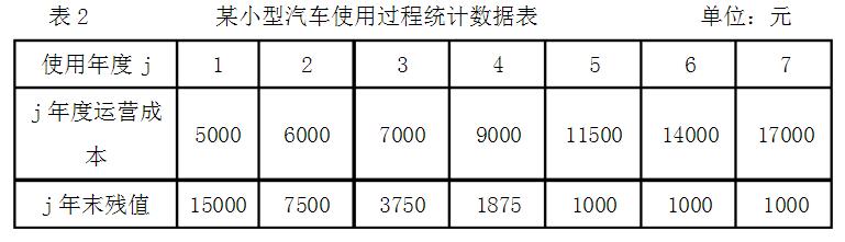 某小型汽车购置费为3万元,在使用中有如下表的统计资料,如果不考虑资金的时间价值,试计算其经济寿命。