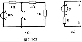 某一有源二端线性网络如图7.1-21(a)所示。该网络的戴维南等效电路如图7.1-21(b)所示,其中US和RS取值为()。