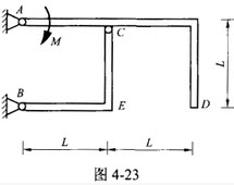 两直角刚杆ACD,BEC在C处铰接,并支承如图4-23所示。若各杆重不计,则支座A处约束力的方向为()。