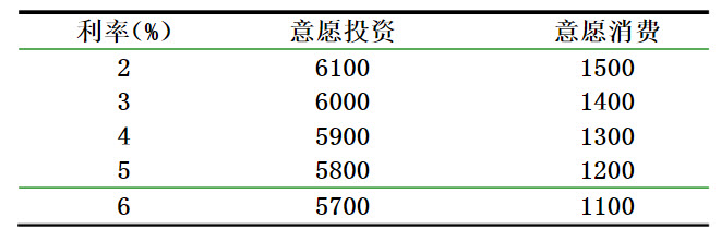 一个经济的充分就业产出为9000,政府购买为2000,意愿消费、意愿投资与利率的关系如下表所示: