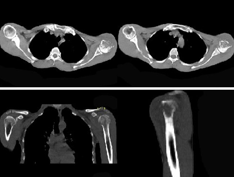 五十六岁男性患者,因右髋间歇性疼痛10年,左髋疼痛6年加重1年入院。近半年来疼痛明显时曾间断服用过小剂量激素。过去曾干过装卸工,20年潜水员工作。X线片示双侧股骨头增大扁平.有囊性变,双侧髋臼浅。