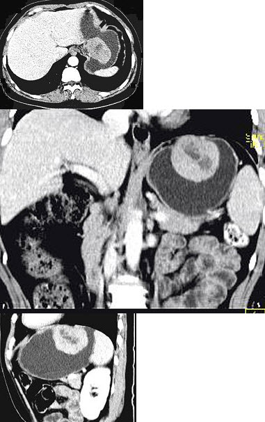 女,51岁,上腹部隐痛不适,CT检查如图,可能的诊断是( )