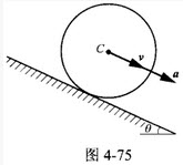 半径为R、质量为m的均质圆轮沿斜面作纯滚动如图4-75所示。已知轮心C的速度为ν、加速度为a,则该轮的动能为()。