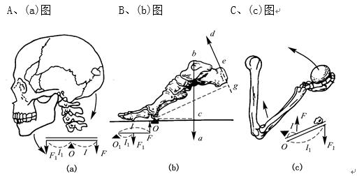 在以下三种人体骨杠杆中,()是速度杠杆,C是省力杠杆。