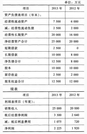 甲公司是一家化工原料生产企业,生产经营无季节性。股东使用管理用财务报表分析体系对公司2013年度业绩进行评价,主要的管理用财务报表数据如下: