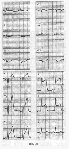 患者女性,58岁,反复发作胸痛1周,每次持续数分钟自行缓解。患者胸痛时的心电图见图5-30,应考虑为()