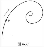 如图4-37所示点P沿螺线自外向内运动。它走过的弧长与时间的一次方成正比。关于该点的运动,有以下4种答案,请判断哪一个答案是正确的()。