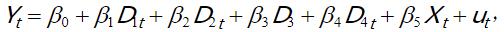 根据某种商品销售量和个人收入季度数据建立如下模型: