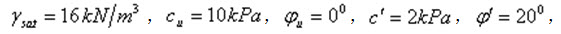 =1.0,地下水位在地基表面处。今在地基上大面积堆载50kPa,试求地基中距地面5米深度处.与水平面成55°角的平面上且当土的固结度达到90%时,土的抗剪强度是多少?强度的净增长值为多少?