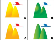如图所示:下面四组图中采用渐变(Gradient)中的放射(Radial)类型渐变的图形有()。