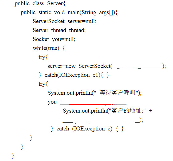 下面的程序段完成服务器在端口4331监听客户端的连接,如果有连接,则在服务端显示客户端的IP地址, 请将程序补充完整。