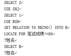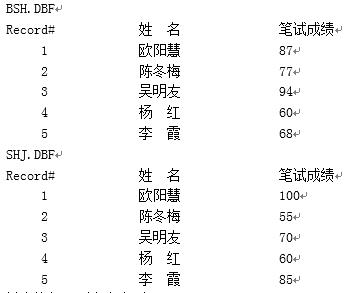 有计算机等级考试的笔试考试成绩表BSH.DBF和上机考试成绩表SHJ.DBF,其内容分别如下: