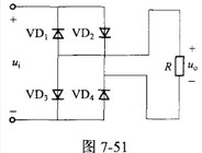图7-51所示电路中,ii=10sinωV,二极管VD2因损坏而断开,这时输出电压的波形和输出电压的平均值为()。