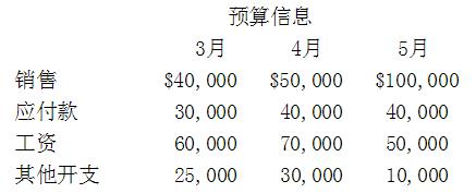 Raymar公司正在制定4月和5月的现金预算。企业在银行里有$200,000的信用额度,年利息是12%。借款以每$10,000为增量单位。4月1日没有贷款余额。本金返还在任何有多余现金的月份里进行。利息每月支付。如果没有贷款余额,Raymar将任何多余的现金投资到美国国债。Raymer要在每月期末的账户中至少保持$100,000的余额,不管是贷款还是投资。预期的每月回款和开支如下所示