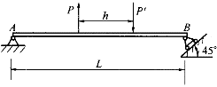 图示水平简支梁AB上,作用一对等值、反向、沿铅直向作用的力,其大小均为P,间距为h,梁的跨度为L,其自重不计。则支座A的反力F