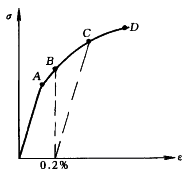 图5所示为某材料的σ-ε曲线,该材料的名义屈服极限σ是对应于曲线上某点的纵坐标值,该点应为:()