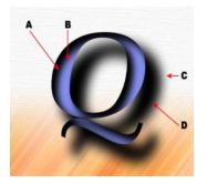 下图字母Q采用了“投影”和“内投影”效果,以下说法正确的是:()