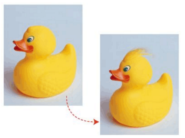 如图所示,在前景色和背景色默认的状态下,在左上图里的鸭子头部使用涂抹工具进行涂抹,得到下右图的结果,请问下列哪些涂抹工具的选项不会用到()