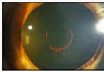 前葡萄膜炎新鲜的虹膜后粘连被拉开时(如图),可见()