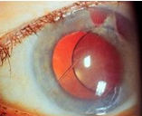 D:虹膜呈棕色,日久后虹膜萎缩、后粘连