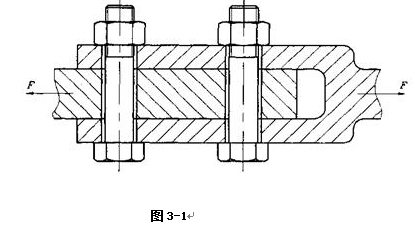 图3-1示螺栓联接中,采用两个M20的普通螺栓,其许用拉应力[σ]=l60N/mm2,联接件接合面间摩擦系数f=0.20,防滑系数Ks=1.2,计算该联接件允许传递的静载荷F=?(M20的螺栓d1=17.294mm)