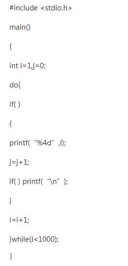 下面程序的功能是用do-while语句求1至1000之间满足“用3除余2;用5除余3;用7除余2”的数,且一行只打印五个数。请填空。