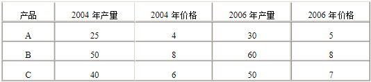 假设一经济社会生产五种产品,它们在2004年与2006年的产量和价格如下表所示。若以2004年为基年,则2006年的国内生产总值折算指数为()
