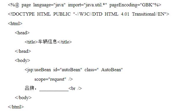 阅读以下JSP中的代码片段:已知在AutoBean中定义了一个autoBrand属性,用于表示车辆所属的品牌,下列选项中能够正确填写在横线处的是()