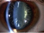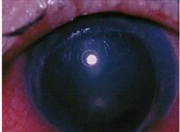 患者,男性,25岁,左眼外伤2天入院。检查右眼视力0.04,结膜混合性充血,角膜水肿,晶状体混浊,向下方脱位嵌顿于瞳孔区,前房浅(如图),眼底不清,眼压40mmHg,该患者最有可能诊断是()