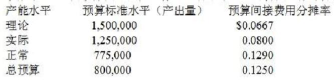 Nash玻璃公司每月有$100,000固定生产间接费用。这个公司对内部和外部的财务报告都采用吸收成本法。4月份采用不同产出数量的标准水平,计算用于成本分摊的预算生产间接费用分摊率。